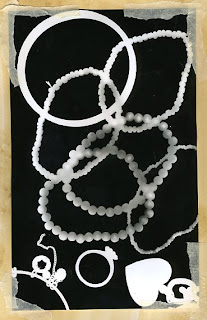 I went in the darkroom to produce these Rayograms. To do this i experimented with a few items and then i brought in a number of different items that i felt related to my project. To get the different effects i overlapped some of my items, used different angels, created different shapes and textures.